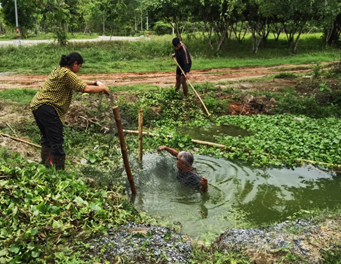 บุคลากรอุทยานพฤกษศาสตร์ ร่วมแรงร่วมใจกำจัดผักตบรอบขอบอ่างเก็บนํ้า