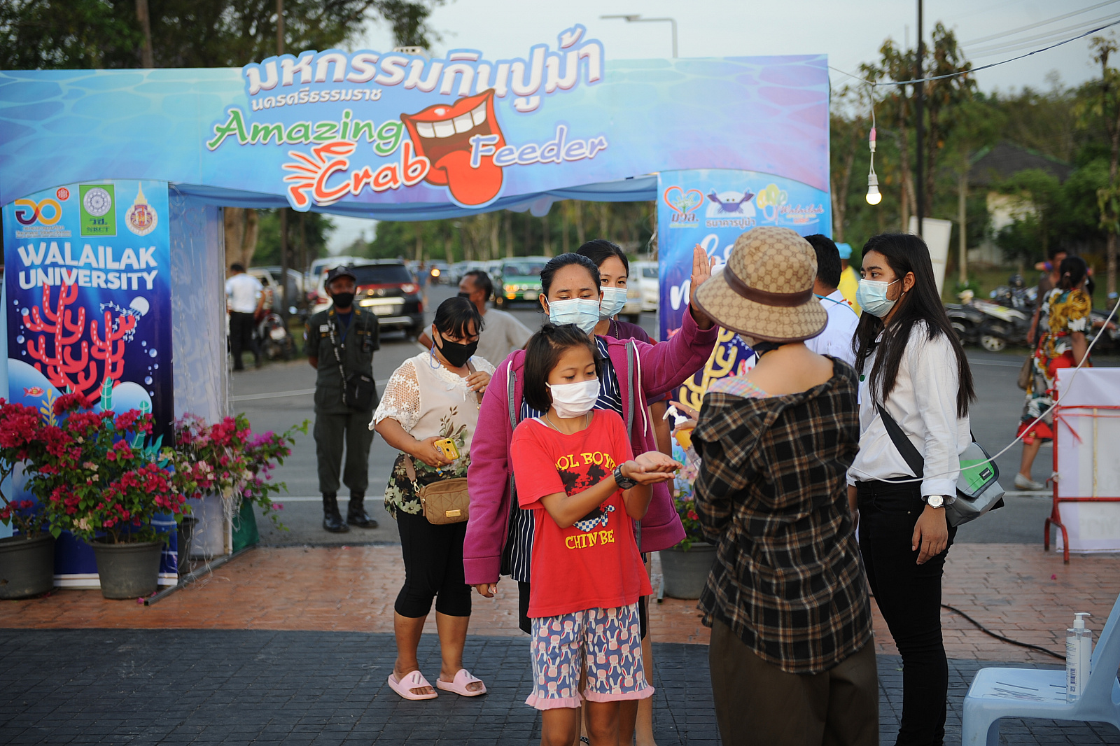 เมื่อวันที่ 8 เมษายน 2564 ที่ผ่านมา ศูนย์บริการวิชาการ มหาวิทยาลัยวลัยลักษณ์ ร่วมกับ สำนักงานการวิจัยแห่งชาติ(วช.) เครือข่ายภาครัฐ เอกชน และภาคประชาชน ร่วมกันจัดงานมหกรรมกินปูม้า จังหวัดนครศรีธรรมราช กระตุ้นการซื้อขายสินค้าผลิตภัณฑ์ปูม้า สินค้าอาหารทะเลอื่นๆ เพื่อสร้างกลไกเศรษฐกิจหมุนเวียนในพื้นที่จังหวัดนครศรีธรรมราช โดยศูนย์เรียนรู้และธนาคารปูม้าในเครือข่ายในพื้นที่จังหวัดนครศรีธรรมราชและสุราษฎร์ธานี ได้ร่วมกันออกร้านจำหน่ายผลิตภัณฑ์ปูม้าที่ผลิตโดยชุมชน ได้รับความสนใจจากนักศึกษาและประชาชนเข้าร่วมงานจำนวนมาก ณ ลานตลาด Bota Market อุทยานพฤกษศาสตร์ มหาวิทยาลัยวลัยลักษณ์