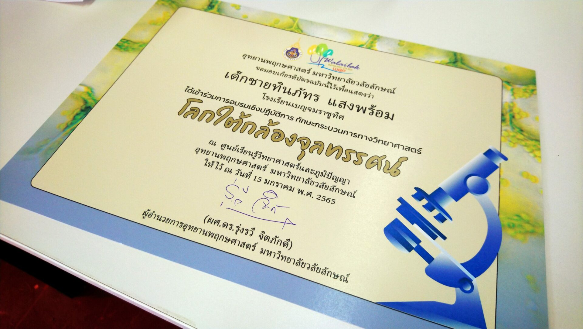 วันเสาร์ที่ 15 มกราคม 2564 ตั้งแต่เวลา 08.30 – 16.00 น. อุทยานพฤกษศาสตร์ มหาวิทยาลัยวลัยลักษณ์ จัดการอบรมเชิงปฏิบัติการ “โลกใต้กล้องจุลทรรศน์” ณ ศูนย์อาคารเรียนรู้วิทยาศาสตร์และภูมิปัญญา แบบ Onsite และ Online ผ่านระบบ Zoom Meeting ให้แก่นักเรียนระดับชั้นมัธยมศึกษา