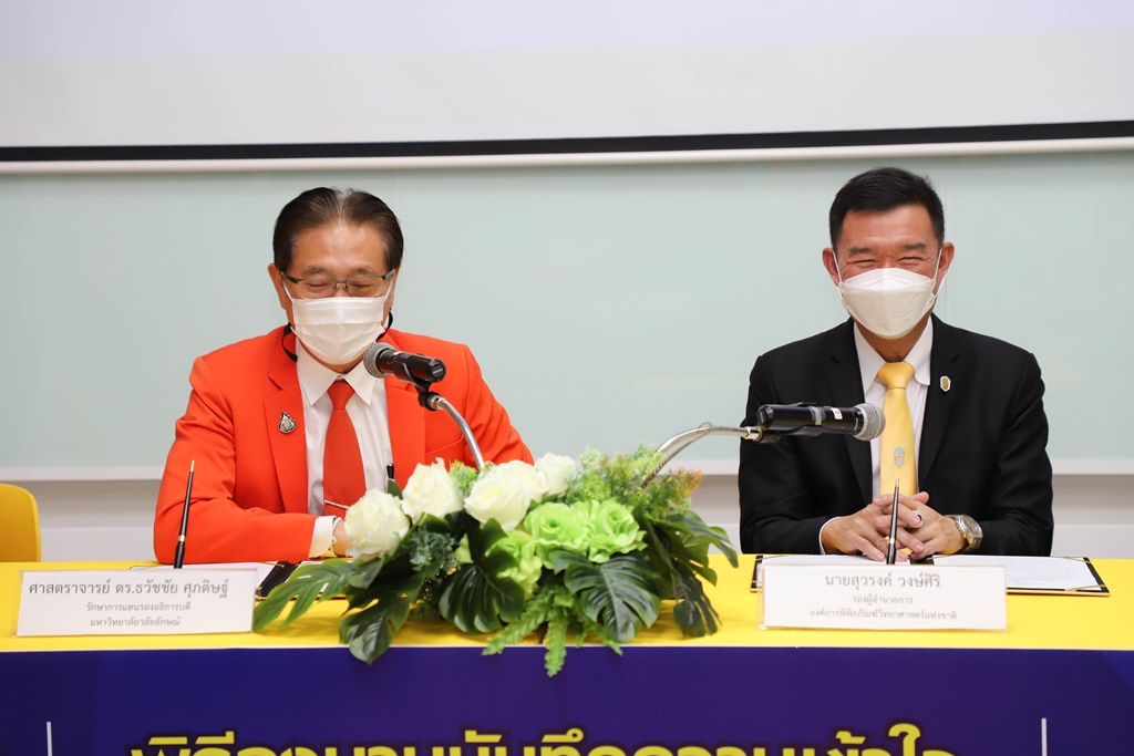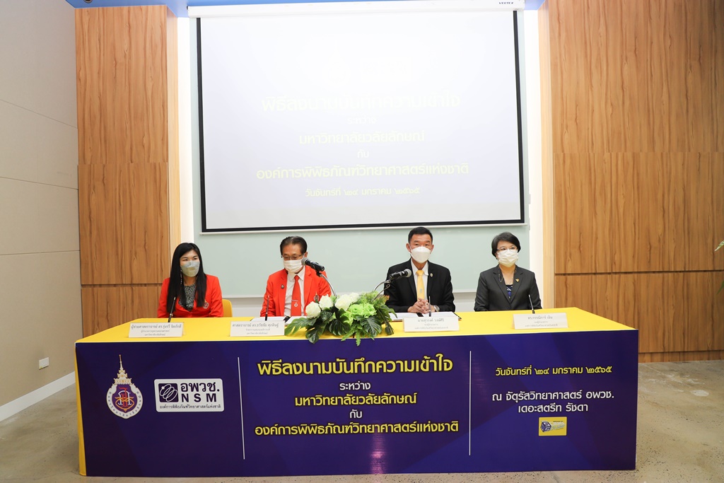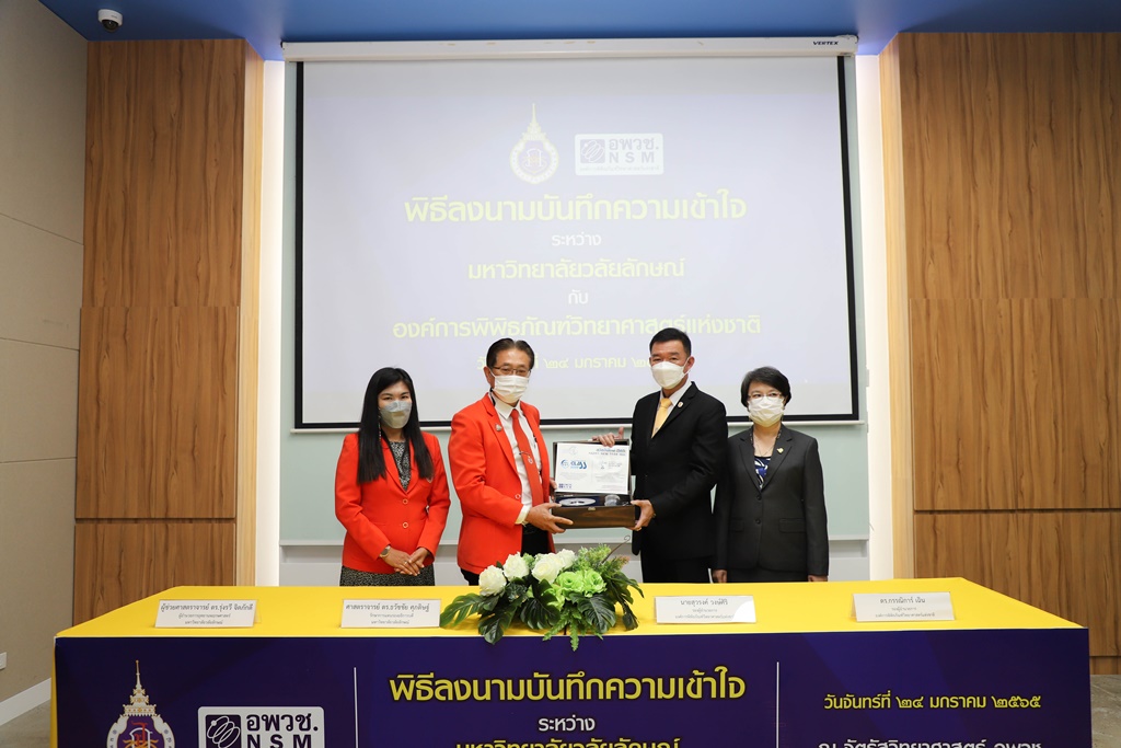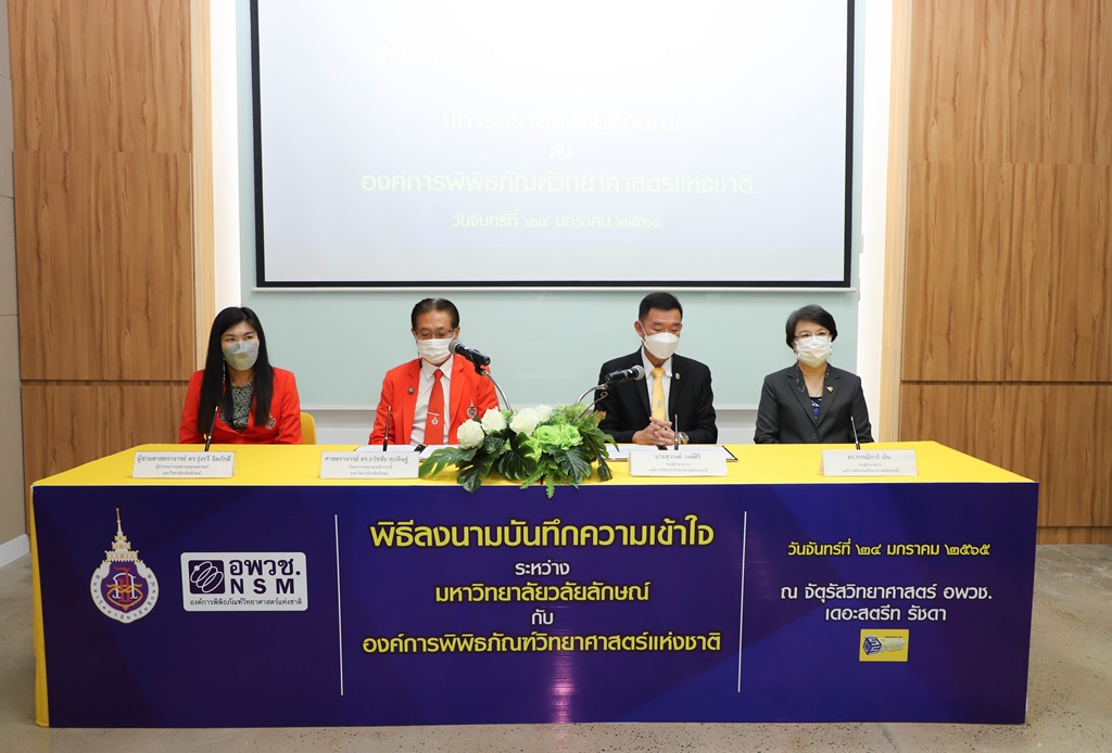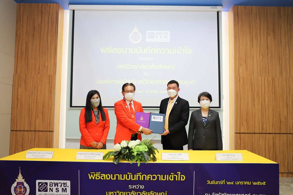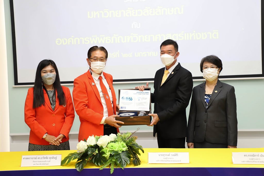 ศาสตราจารย์ ดร.ธวัชชัย ศุภดิษฐ์ รักษาการแทนรองอธิการบดี ในนามผู้แทนอธิการบดีมหาวิทยาลัยวลัยลักษณ์ ลงนามบันทึกความเข้าใจร่วมกับ นายสุวรงค์ วงษ์ศิริ รองผู้อำนวยการองค์การพิพิธภัณฑ์วิทยาศาสตร์แห่งชาติ โดยมี ผู้ช่วยศาสตราจารย์ ดร.รุ่งรวี จิตภักดี ผู้อำนวยการอุทยานพฤกษศาสตร์ มหาวิทยาลัยวลัยลักษณ์ และ ดร.กรรณิการ์ เฉิน รองผู้อำนวยการองค์การพิพิธภัณฑ์วิทยาศาสตร์แห่งชาติ เป็นพยานในพิธีลงนาม เมื่อวันที่ 24 มกราคม 2565 ณ จัตุรัสวิทยาศาสตร์ อพวช. เดอะ สตรีท รัชดา กรุงเทพมหานคร