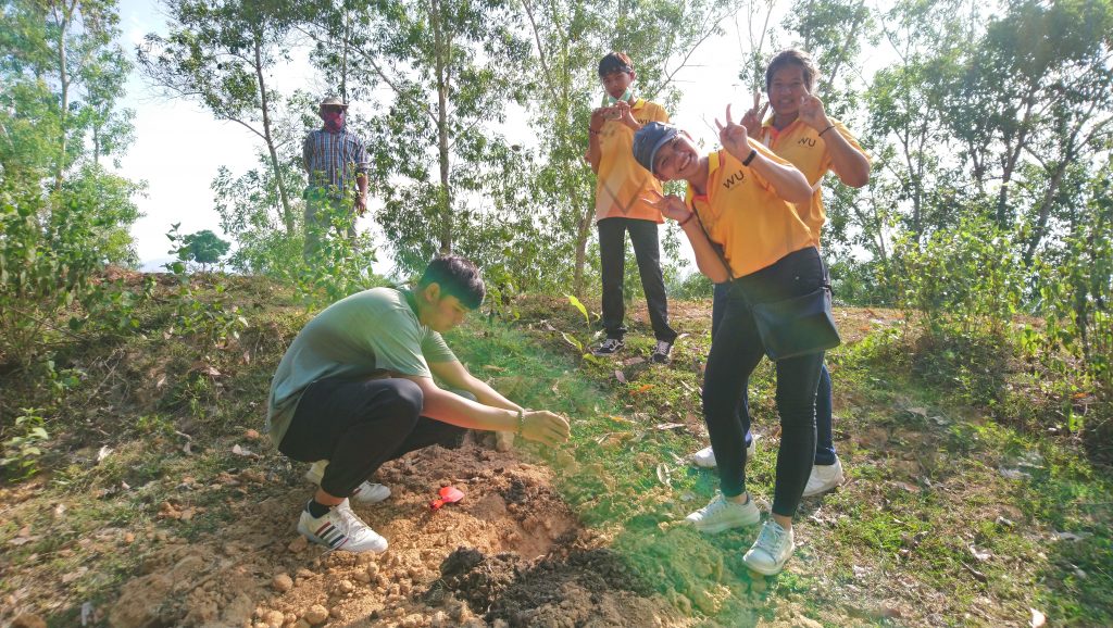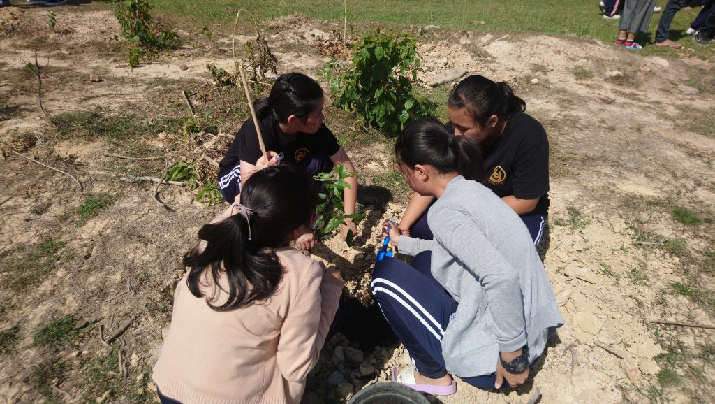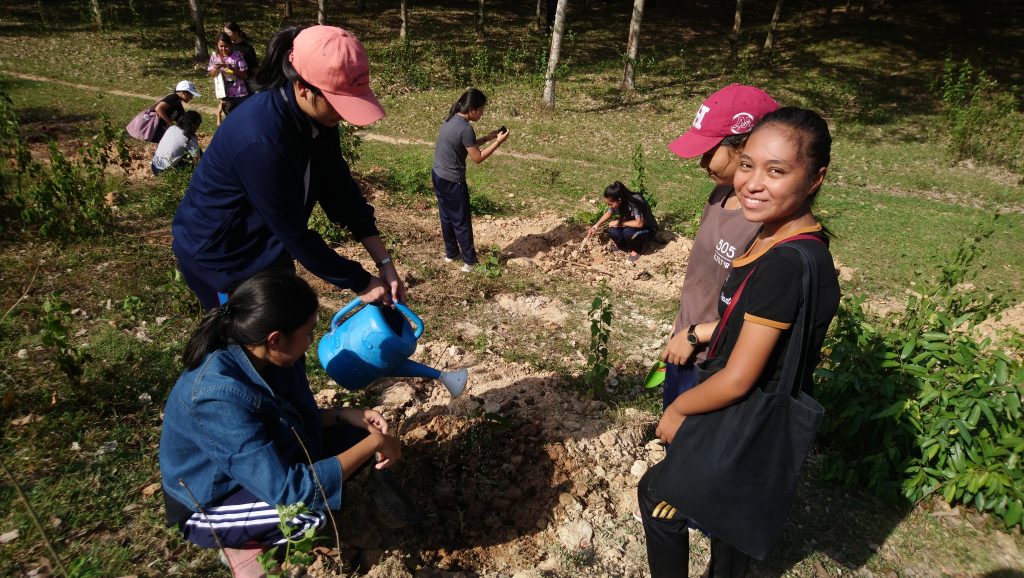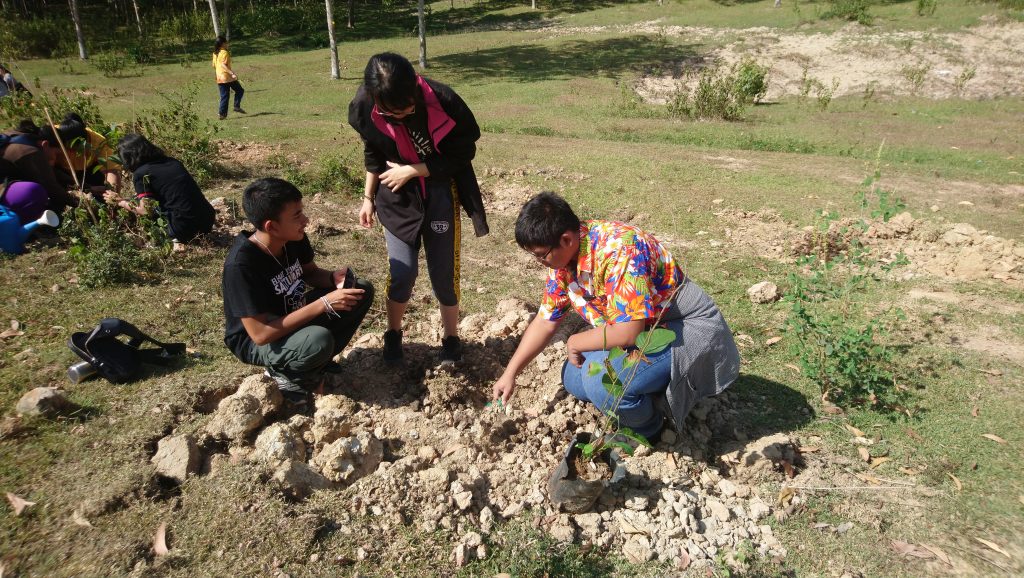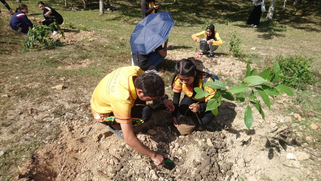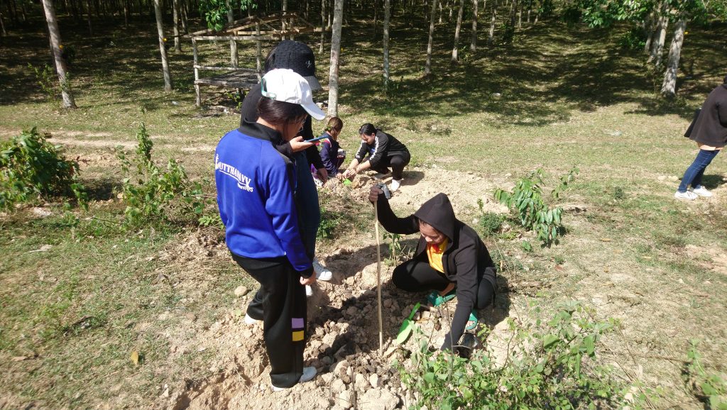 นักศึกษารายวิชา GEN61-152 การอนุรักษ์สิ่งแวดล้อมและสภาวะโลกร้อน ร่วมกิจกรรมการปลูกต้นไม้ เพื่อน้อมรำลึกในพระมหากรุณาธิคุณและแสดงความจงรักภักดีแด่องค์สมเด็จพระเจ้าอยู่หัว รวมทั้งปลูกฝังจิตสำนึกด้านการอนุรักษ์สิ่งแวดล้อมให้กับนักศึกษา