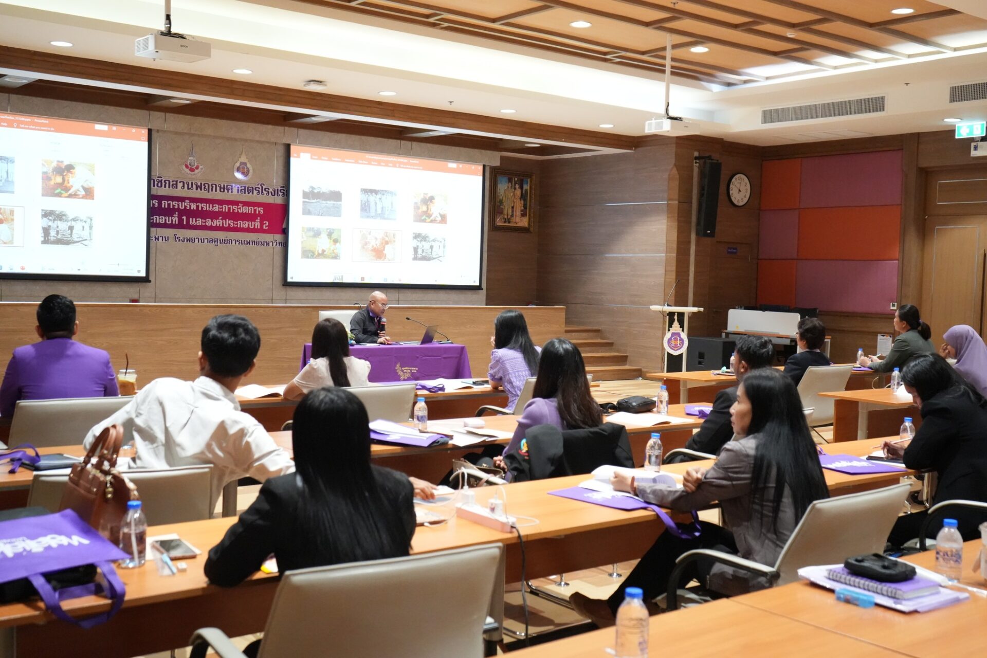 โดยมี รองศาสตราจารย์ ดร.สุวิทย์ วุฒิสุทธิเมธาวี รักษาการแทนรองอธิการบดีมหาวิทยาลัยวลัยลักษณ์ ในฐานะผู้อำนวยการศูนย์ประสานงาน อพ.สธ.-มหาวิทยาลัยวลัยลักษณ์ เป็นประธานในพิธีเปิดการประชุมกลุ่มฯ และได้รับเกียรติจากคุณมรกต วัชรมุสิก เจ้าหน้าที่ อพ.สธ. ในการบรรยายหัวข้อ “ที่มา ความสําคัญ ภาพรวม อพ.สธ. นโยบาย ทิศทาง เป้าหมาย และการบริหารและการจัดการงานสวนพฤกษศาสตร์โรงเรียน” รวมถึงวิทยากรผู้ช่วย อพ.สธ.-มวล. บรรยายในหัวข้อต่างๆ และปฏิบัติการกลุ่ม ทั้งหมด 4 ฐานการเรียนรู้ ได้แก่