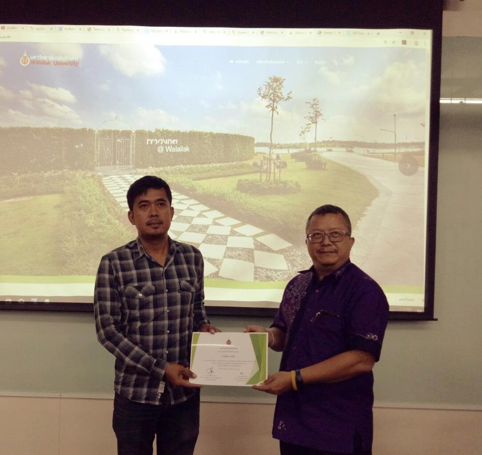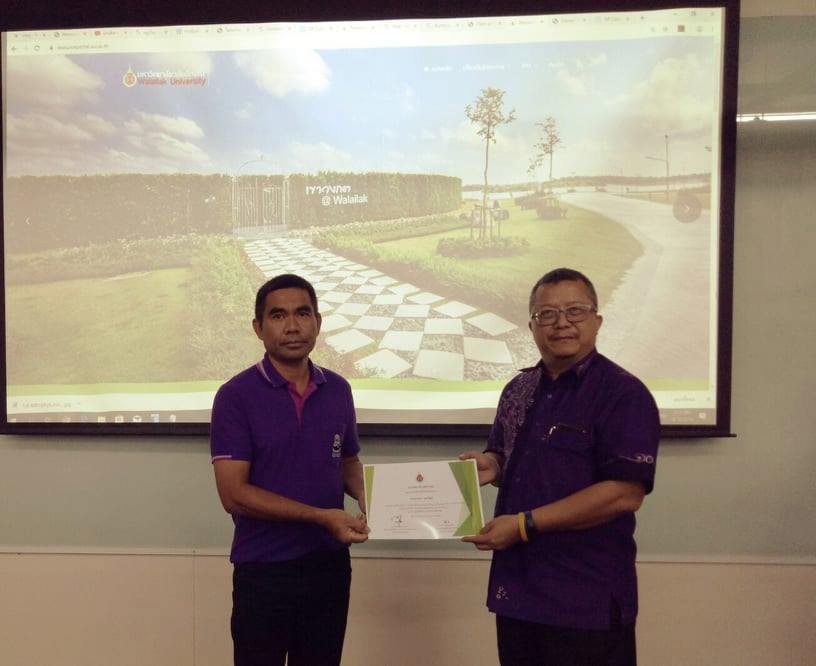 เวลา 09.00-16.00 น. ณ ศูนย์เทคโนโลยีดิจิทัล การอบรมดังกล่าวได้รับเกียรติจากรักษาการแทนผู้อำนวยการอุทยานพฤกษศาสตร์ อาจารย์สุธีระ ทองขาว กล่าวเปิดการอบรม โดยมี ดร.เปรมฤดี นุ่นสังข์ ผู้อำนวยการศูนย์เทคโนโลยีดิจิทัล กล่าวรายงานความเป็นมาและวัตถุประสงค์การจัดอบรมครั้งนี้ การอบรมดังกล่าวมีผู้ร่วมอบรมจากหน่วยงานท้องถิ่น และบุคลากรมหาวิทยาลัยวลัยลักษณ์ที่เกี่ยวข้อง ประมาณ 50 คน โดยีวัตถุประสงค์เพื่อให้หน่วยงานที่ร่วมโครงการอนุรักษ์พันธุกรรมพืชอันเนื่องมาจากพระราชดำริ สมเด็จพระเทพรัตนราชสุดาฯ สยามบรมราชกุมารี (อพ.สธ.) สามารถบันทึกข้อมูลและสามารถนำข้อมูลไปใช้ในการเรียนรู้แบบออนไลน์เหมาะกับยุคประเทศไทย 4.0 ขอขอบคุณวิทยากรจากศูนย์เทคโลยีดิจิทัล ศูนย์เครื่องมือวิทยาศาสตร์และเทคโนโลยี และอุทยานพฤกษศาสตร์