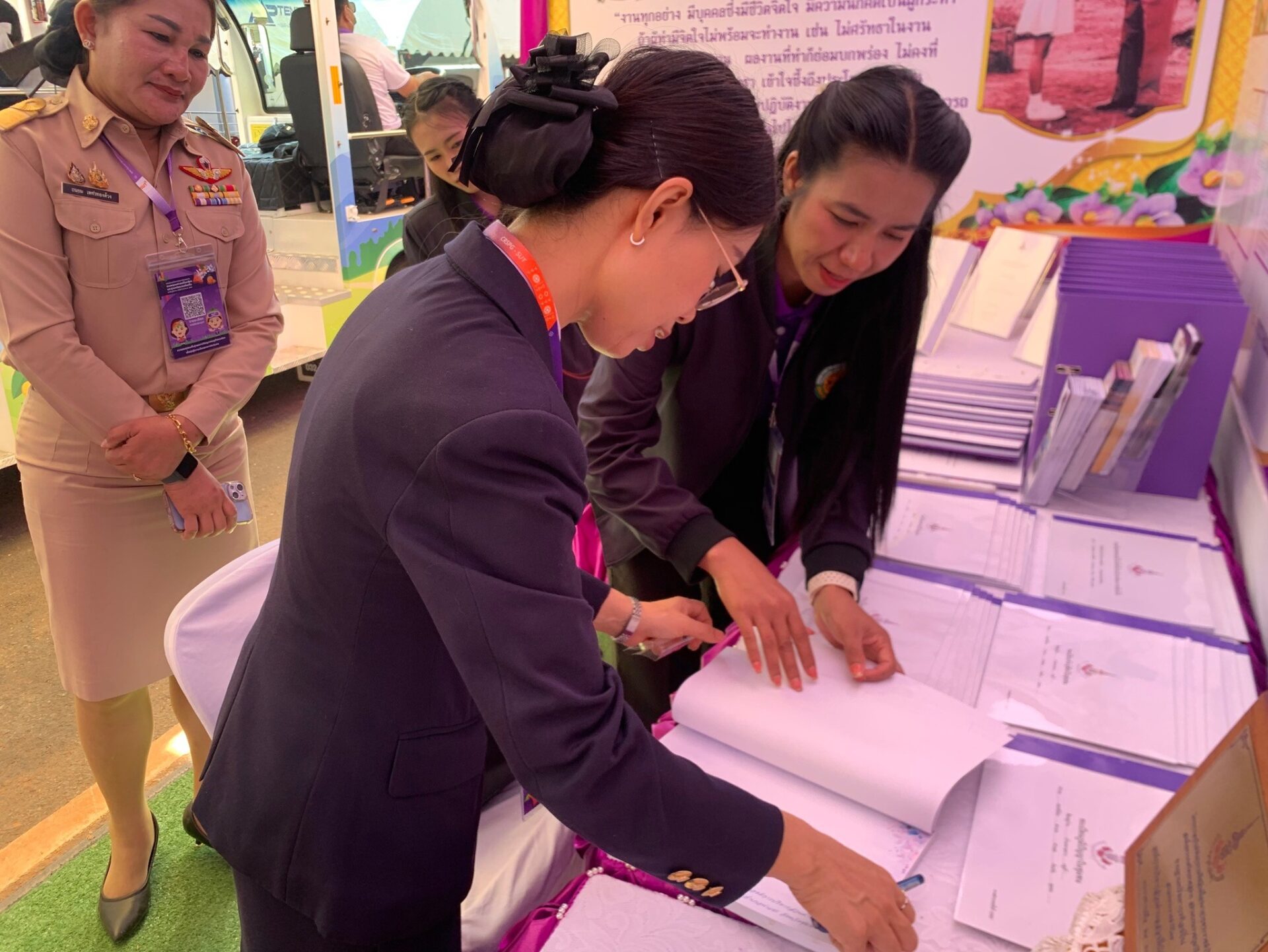 พร้อมด้วย รศ.ดร.ฉัตรชัย กัลยาณปพน รักษาการผู้อำนวยการอุทยานพฤกษศาสตร์ มหาวิทยาลัยวลัยลักษณ์ ในฐานะรองผู้อำนวยการศูนย์ประสานงาน อพ.สธ.-มหาวิทยาลัยวลัยลักษณ์ ผู้แทนจากศูนย์ประสานงาน อพ.สธ.-มหาวิทยาลัยวลัยลักษณ์ เข้ารับเสร็จฯ ณ ห้องหยาดปัญญา อพ.สธ. รวมถึง รศ.ดร.อรอนงค์ เฉียบแหลม ผู้ถวายรายงานประจำบูธนิทรรศการ