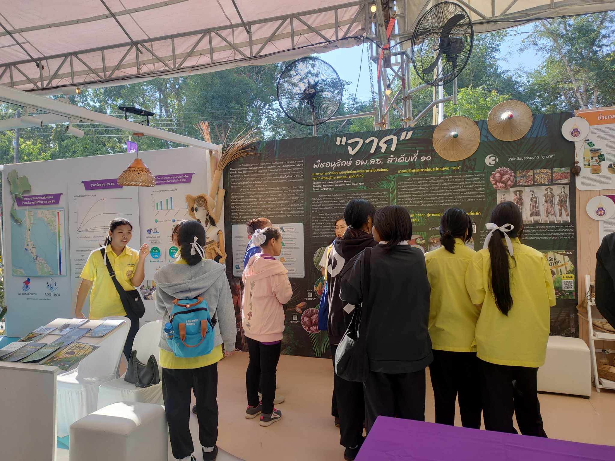 ตลอดทั้งวัน บูธจัดเต็มกิจกรรมความรู้เกี่ยวกับการอนุรักษ์ทรัพยากรธรรมชาติในท้องถิ่น พร้อมทั้งมีของแจกมากมาย เช่น สมุดโน้ต น้ำตาลจาก เยลลี่สับปะรด ทุเรียนเทศบาร์ และของที่ระลึกจาก อพ.สธ.-ภาคใต้ ซึ่งเป็นที่ถูกใจของผู้เข้าร่วมทุกวัย บรรยากาศเป็นไปอย่างคึกคัก มีการร่วมสนุกและพูดคุยอย่างใกล้ชิดระหว่างเจ้าหน้าที่ อพ.สธ.-ภาคใต้ และผู้เข้าชม