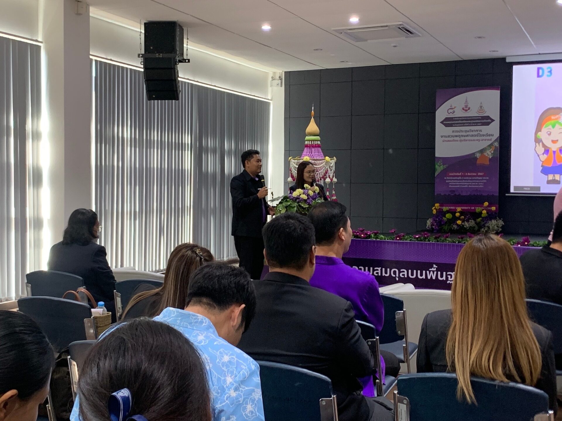 วันที่ 3 ธันวาคม 2567 ในงานประชุมวิชาการและนิทรรศการสวนพฤกษศาสตร์โรงเรียนและงานฐานทรัพยากรท้องถิ่น ระดับภูมิภาค ครั้งที่ 8 ศูนย์ประสานงาน อพ.สธ.-มหาวิทยาลัยวลัยลักษณ์(อพ.สธ.-มวล.) รวมถึงเจ้าหน้าที่ อพ.สธ.-ภาคใต้ ได้ส่งตัวแทนเข้าร่วมเป็นพิธีกรดำเนินรายการ โดย อพ.สธ.-มวล. มี คุณนันทกาญจน์ บุญช่วย และ ว่าที่ ร.ต.อัครายุทธ รังสิมันตุชาติ ได้ทำหน้าที่พิธีกรในกิจกรรมการนำเสนอผลงาน การประชุมวิชาการงานสวนพฤกษศาสตร์โรงเรียน ณ ห้องหยาดปัญญา ซึ่งมีบทบาทสำคัญในการสร้างบรรยากาศที่อบอุ่นและเป็นกันเองให้กับผู้เข้าร่วมรับฟังการนำเสนอผลงาน