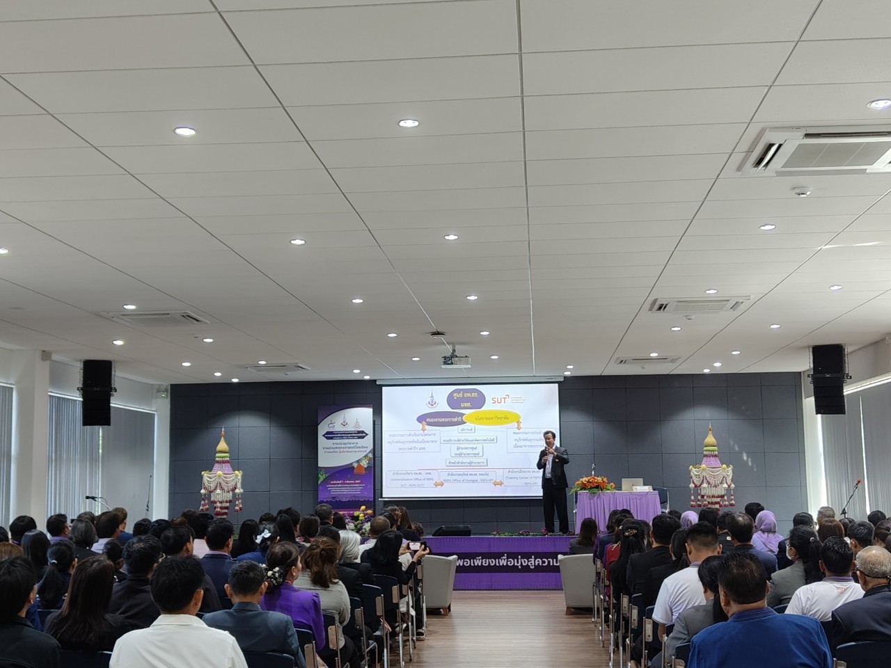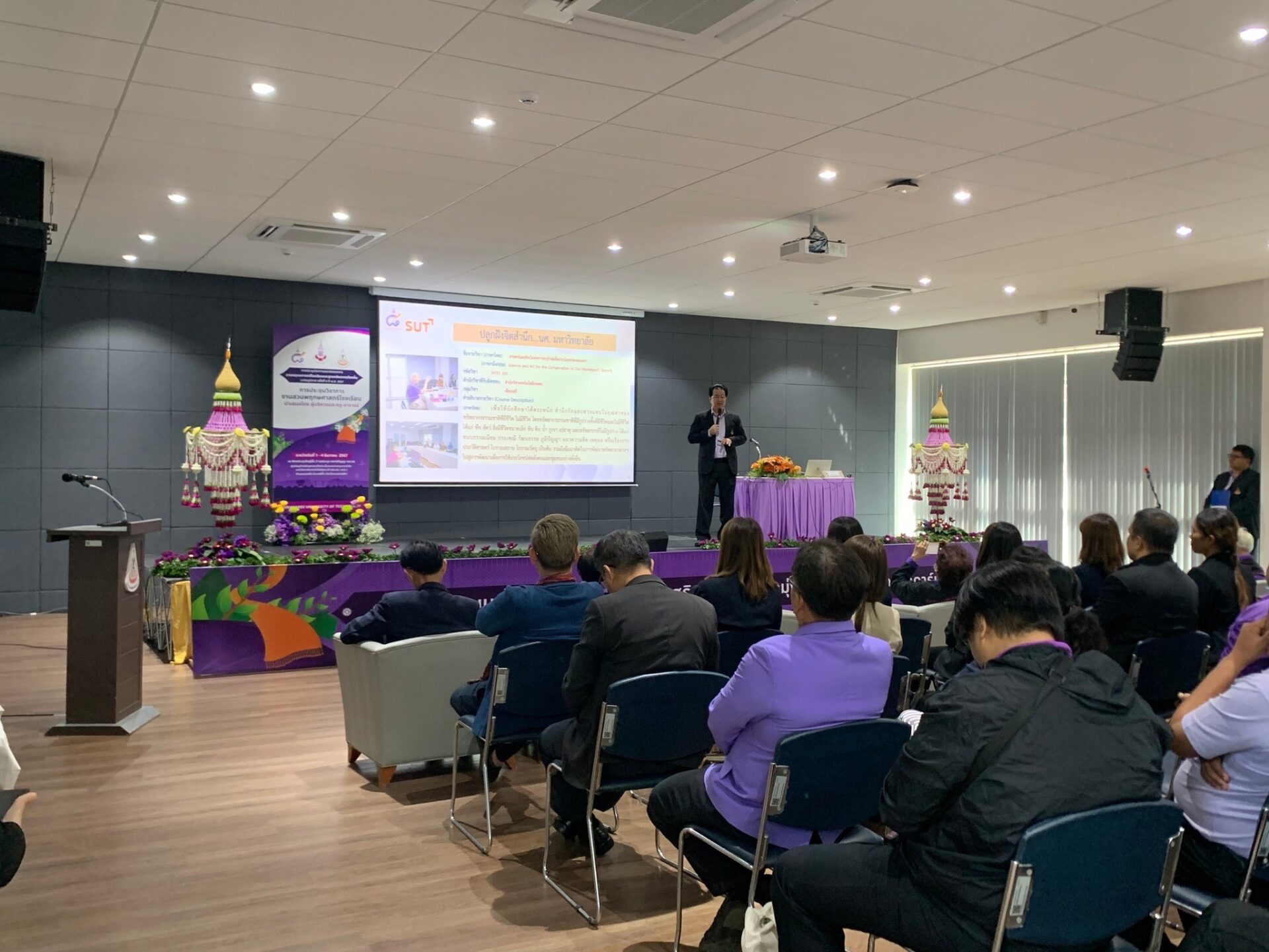 วันที่ 1 ธันวาคม 2567 ศูนย์ประสานงาน อพ.สธ.-มหาวิทยาลัยวลัยลักษณ์ นำโดย รศ.ดร.สุวิทย์ วุฒิสุทธิเมธาวี รองอธิการบดี มหาวิทยาลัยวลัยลักษณ์ ในฐานะผู้อำนวยการศูนย์ประสานงาน อพ.สธ.-มหาวิทยาลัยวลัยลักษณ์ พร้อมด้วย รศ.ดร.ฉัตรชัย กัลยาณปพน รักษาการผู้อำนวยการอุทยานพฤกษศาสตร์ มหาวิทยาลัยวลัยลักษณ์ ในฐานะรองผู้อำนวยการศูนย์ประสานงาน อพ.สธ.-มหาวิทยาลัยวลัยลักษณ์ รวมถึงเจ้าหน้าที่ศูนย์ประสานงาน อพ.สธ.-มหาวิทยาลัยวลัยลักษณ์ เข้าร่วมรับฟังรรยายพิเศษ เรื่อง สรุปการดำเนินงานสนองพระราชดำริ ของ อพ.สธ. – มทส. โดย รองศาสตราจารย์ ดร.อนันต์ ทองระอา อธิการบดีมหาวิทยาลัยเทคโนโลยีสุรนารี