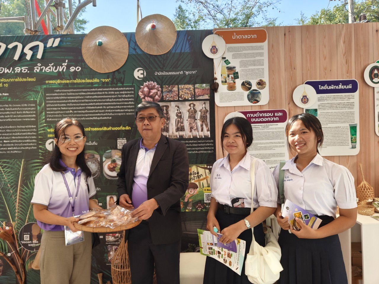โดยศูนย์ประสานงาน อพ.สธ.-มหาวิทยาลัยวลัยลักษณ์ นำโดย รศ.ดร.สุวิทย์ วุฒิสุทธิเมธาวี รองอธิการบดี มหาวิทยาลัยวลัยลักษณ์ ในฐานะผู้อำนวยการศูนย์ประสานงาน อพ.สธ.-มหาวิทยาลัยวลัยลักษณ์ เป็นผู้ทูลเกล้าฯ ถวายสิ่งอาทิ หนังสือ “จาก” พืชอนุรักษ์ อพ.สธ. ลำดับที่ ๑๐, หนังสือ คู่มือ สิ่งแวดล้อมศึกษาป่าจาก สำหรับประถมศึกษา, หนังสือ คู่มือ สิ่งแวดล้อมศึกษาป่าจาก สำหรับประถมศึกษา, น้ำตาลจากผง, น้ำสัมจาก, “โลชั่นยับยั้งเชื้อแบคทีเรียจากสารสกัดผักเสี้ยนผี”, “กาบดำกรอบ”, หนังสือ ตำรับอาหาร “ต้นจาก”