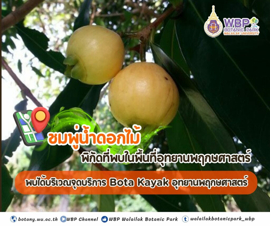 หากคุณมีโอกาสเดินเล่นท่ามกลางแมกไม้ในอุทยานพฤกษศาสตร์ มหาวิทยาลัยวลัยลักษณ์ในช่วงฤดูร้อน (เมษายน 2568) ที่ยังมีสายฝนโปรยปรายเป็นระยะ อย่าลืมแวะไปยัง จุดบริการ Bota Kayak ริมสระน้ำ เพราะที่นั่น…มี “ต้นชมพู่น้ำดอกไม้” ตั้งตระหง่านรอต้อนรับ