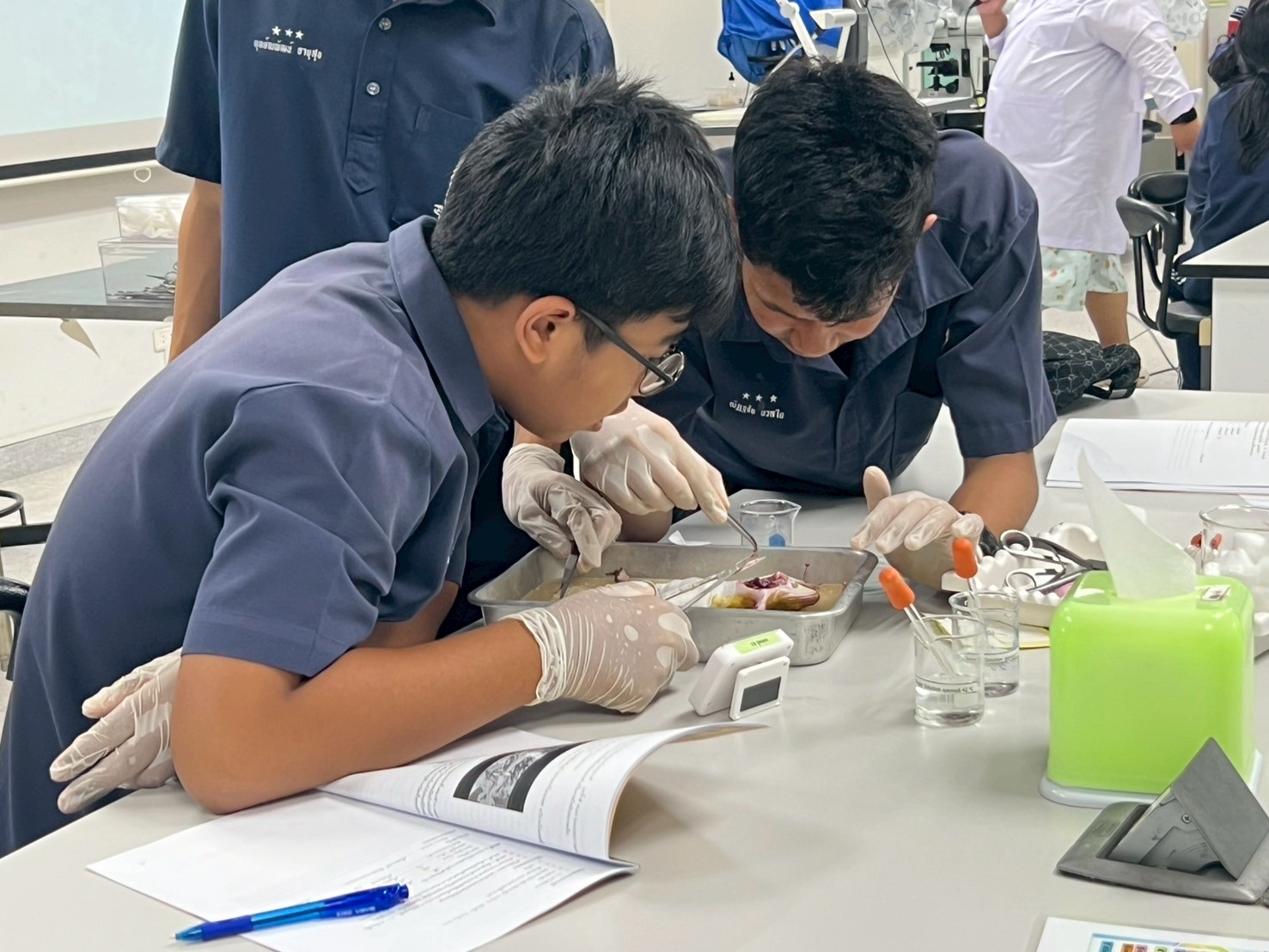 🐸 กิจกรรม “ผ่ากบ พบรัก” – นักเรียนได้ทดลองผ่ากบจริง เพื่อเรียนรู้ระบบอวัยวะภายในของสัตว์มีกระดูกสันหลัง และเชื่อมโยงกับความรู้ด้านชีววิทยา
