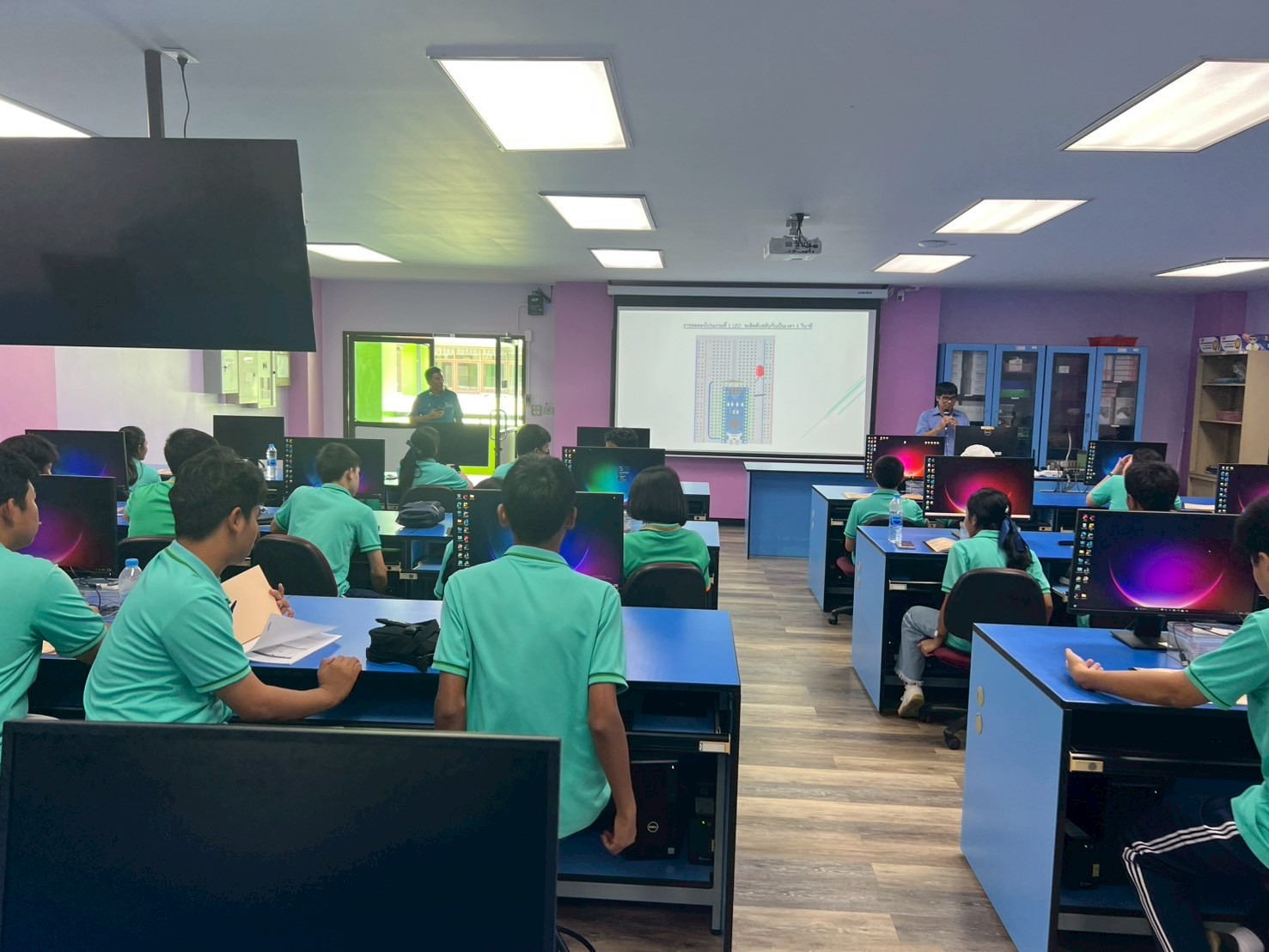 🖥️ กิจกรรม “การเขียนโปรแกรมแบบ Block Programming และไมโครคอนโทรลเลอร์” – นักเรียนได้ฝึกเขียนโปรแกรมพื้นฐานแบบ Block-based และทดลองควบคุมอุปกรณ์อิเล็กทรอนิกส์ผ่านไมโครคอนโทรลเลอร์ เสริมสร้างแนวคิดเชิงตรรกะและทักษะด้าน Coding