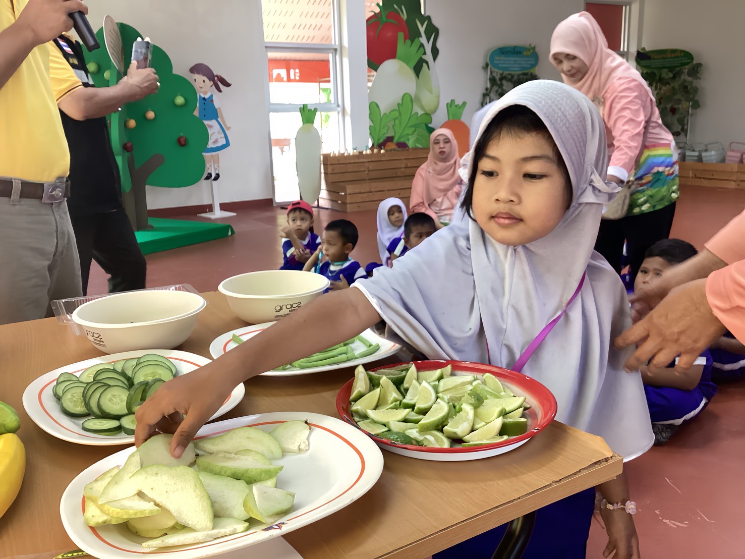 1. กิจกรรมผักผลไม้ เด็ก ๆ ได้ทำความรู้จักกับชนิดและประโยชน์ของผักผลไม้ ผ่านการสังเกต การสัมผัส และการมีส่วนร่วมในกิจกรรม เพื่อสร้างพื้นฐานด้านโภชนาการและปลูกฝังนิสัยรักการรับประทานผักผลไม้ที่ดีต่อสุขภาพ