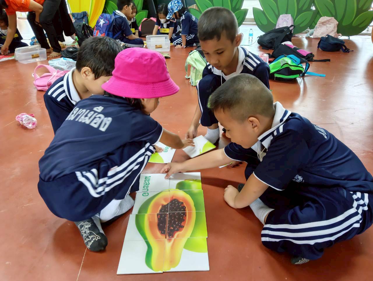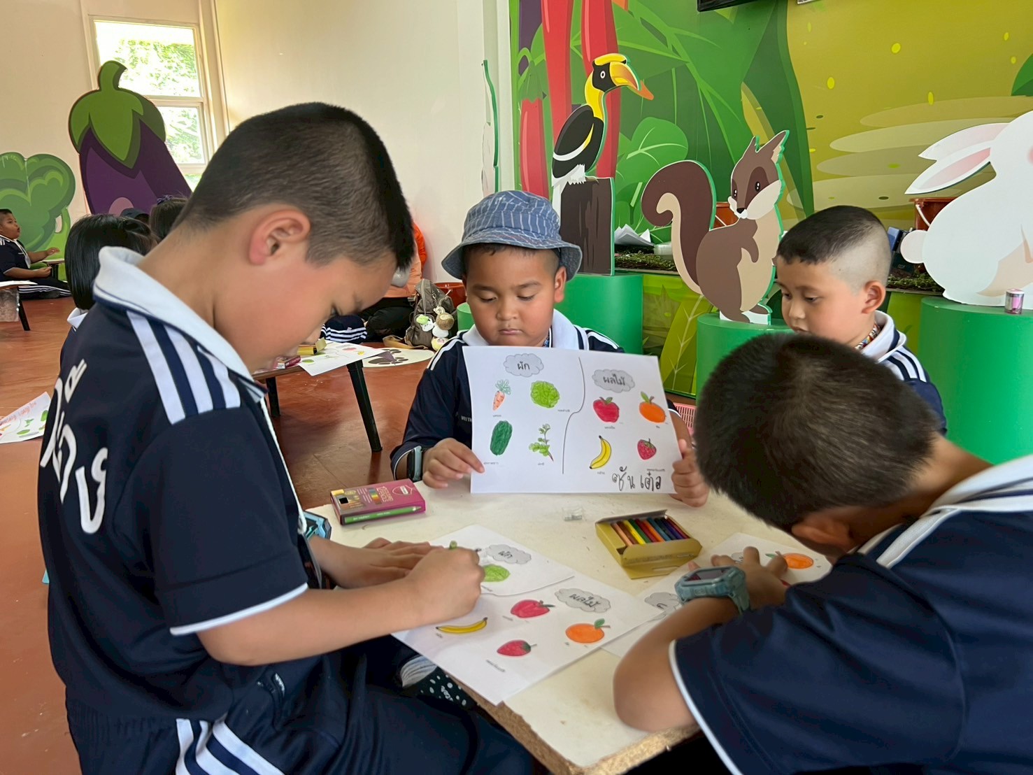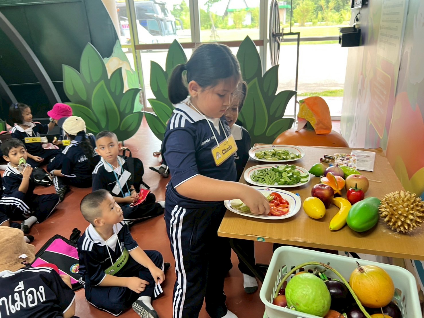 1. กิจกรรมดินแดนผักและผลไม้ ให้นักเรียนได้เรียนรู้เกี่ยวกับชนิดและประโยชน์ของผักผลไม้ ผ่านการสังเกตและการมีส่วนร่วมในกิจกรรม เพื่อสร้างพื้นฐานความเข้าใจด้านโภชนาการที่ดี