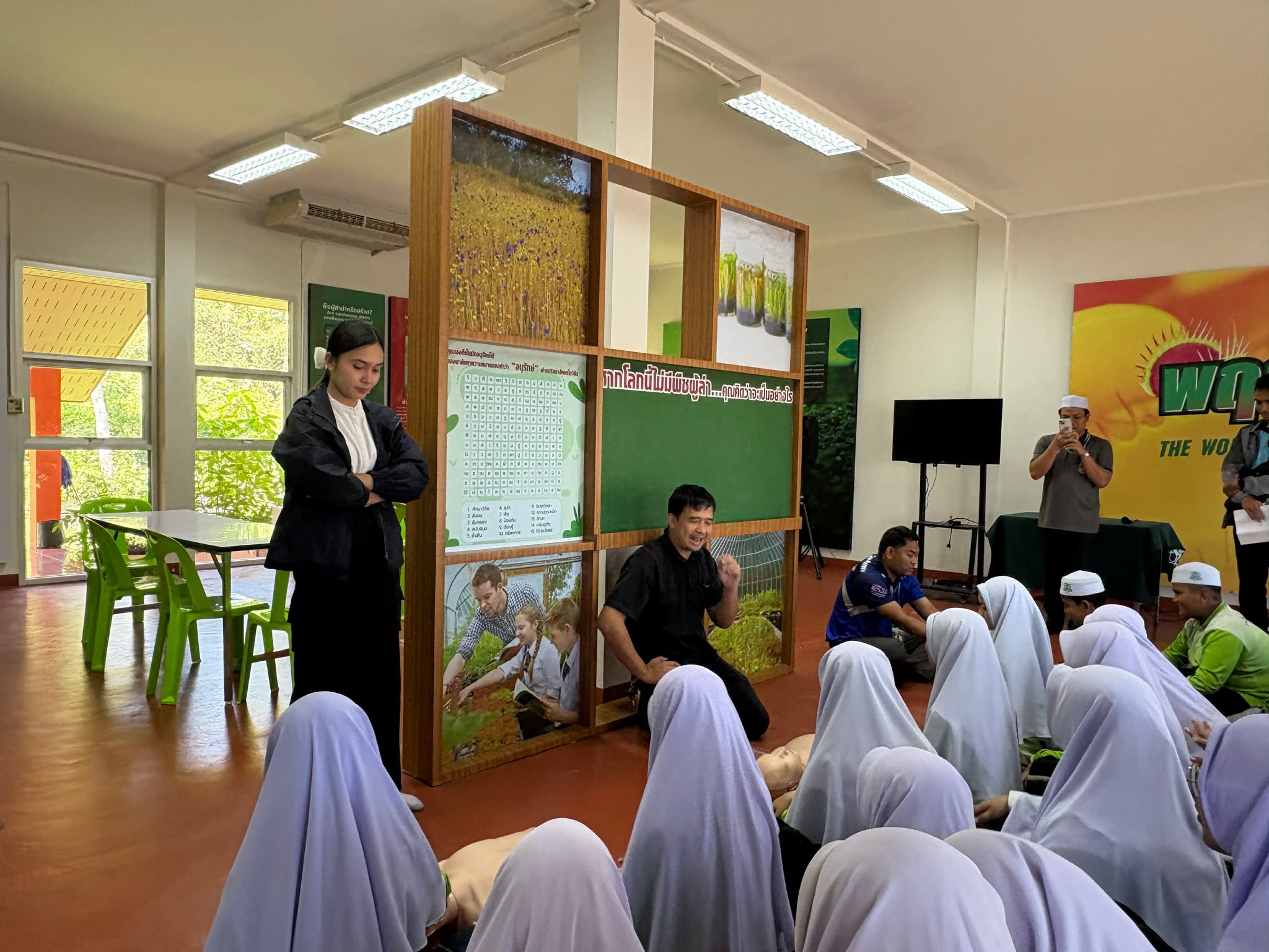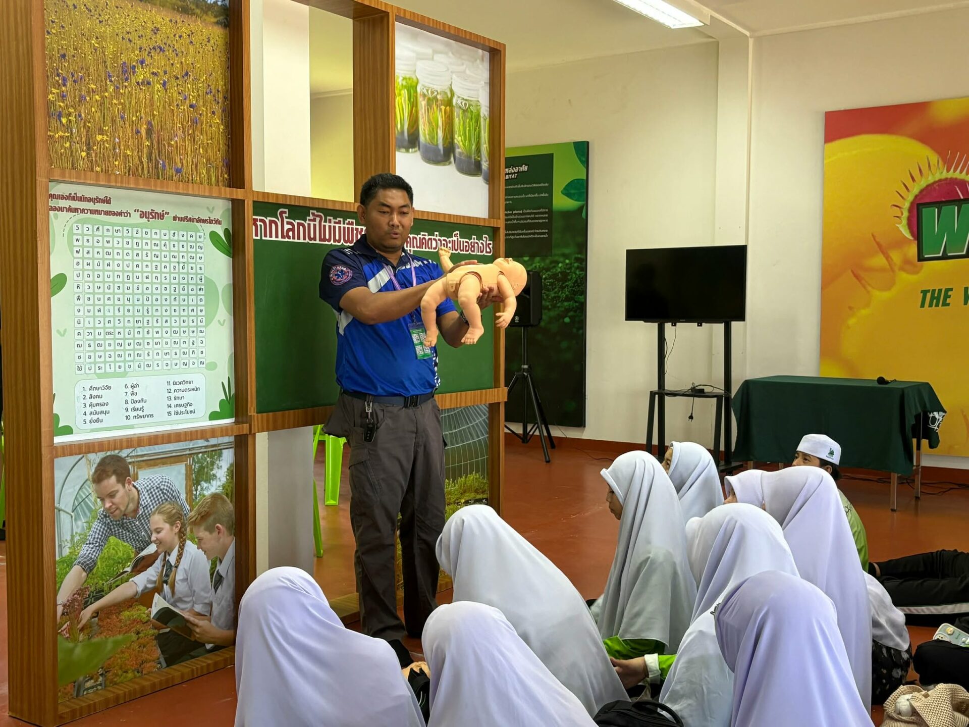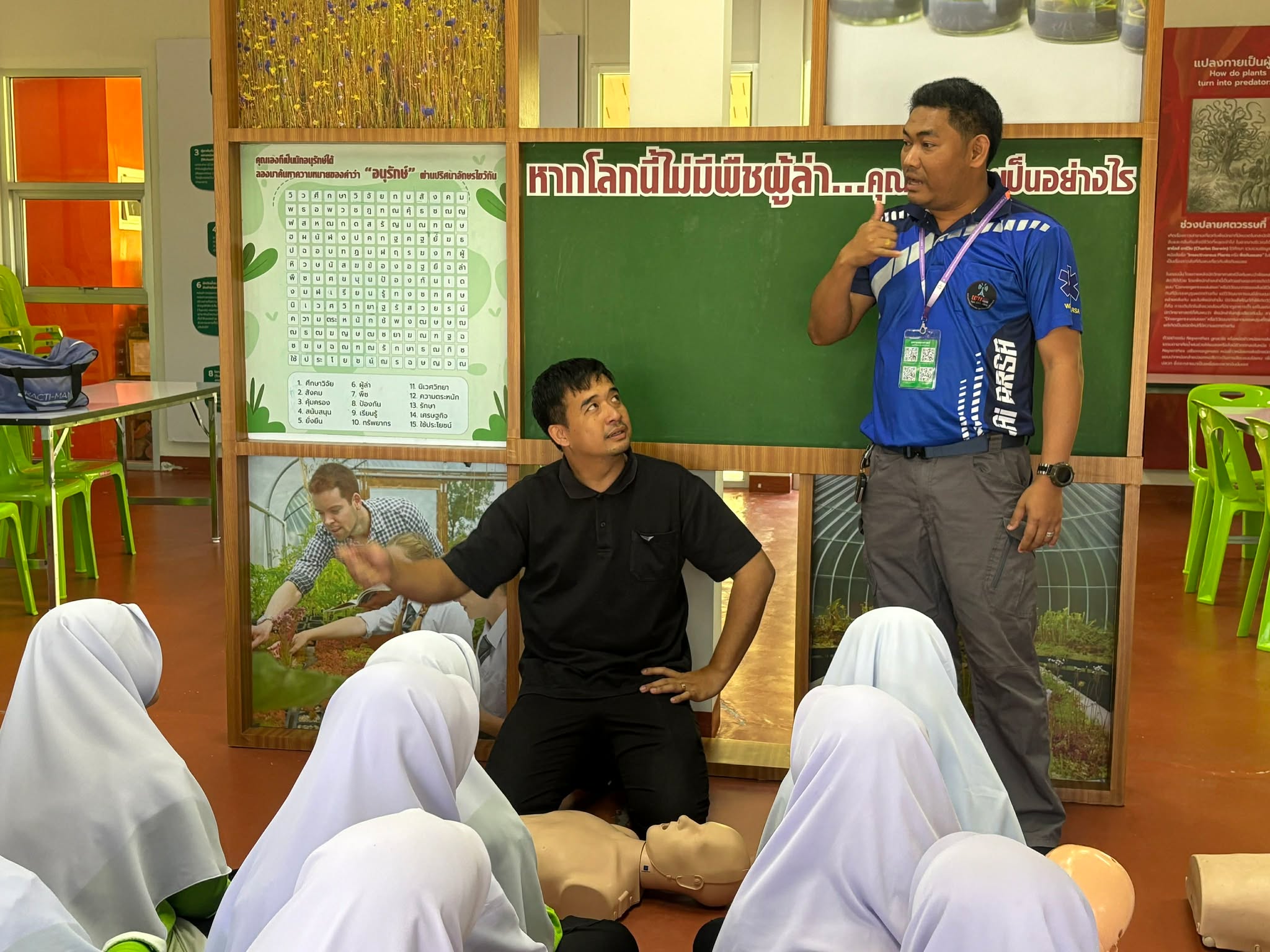 1. กิจกรรม CPR นักเรียนได้รับการฝึกพื้นฐานการช่วยฟื้นคืนชีพ (Cardiopulmonary Resuscitation: CPR) โดยทีมวิทยากรได้สาธิตขั้นตอนการช่วยเหลือผู้หยุดหายใจหรือหัวใจหยุดเต้น การประเมินสถานการณ์เบื้องต้น และให้นักเรียนฝึกปฏิบัติบีบอัดหน้าอกบนหุ่นจำลองอย่างถูกวิธี เพื่อเสริมสร้างทักษะชีวิตที่สำคัญในภาวะฉุกเฉิน