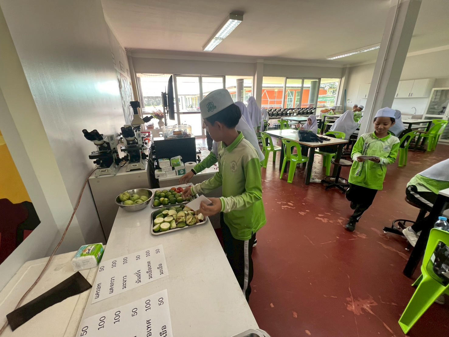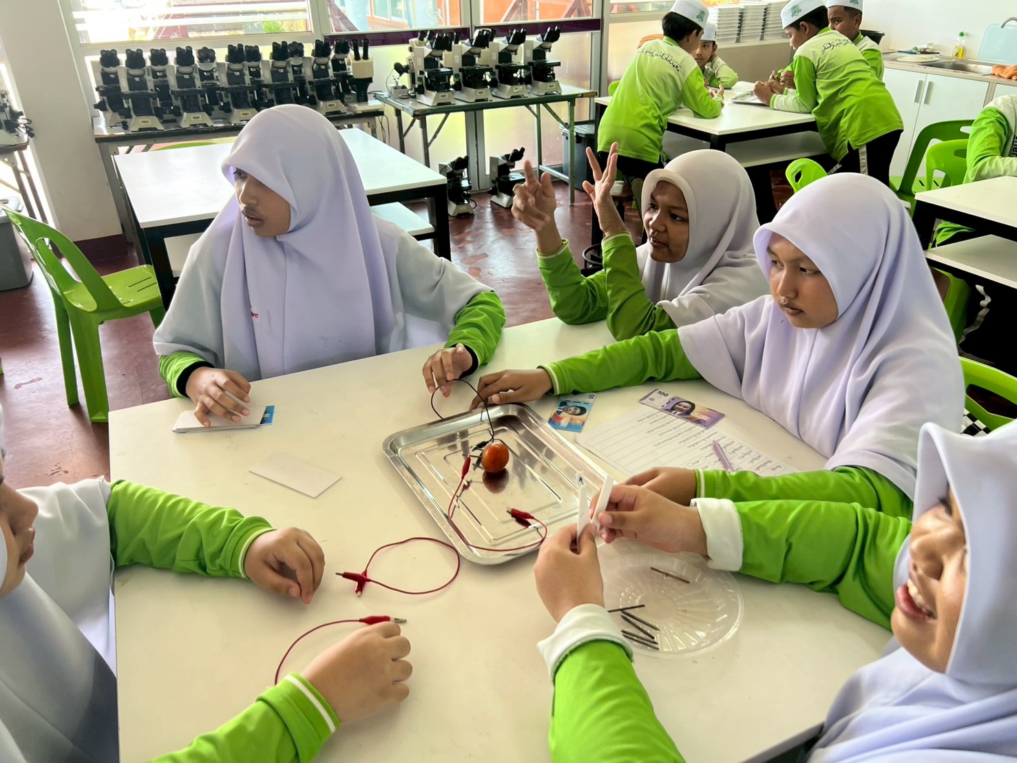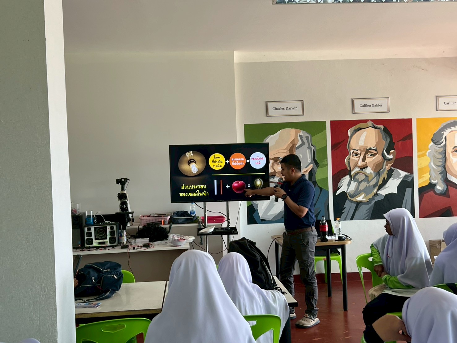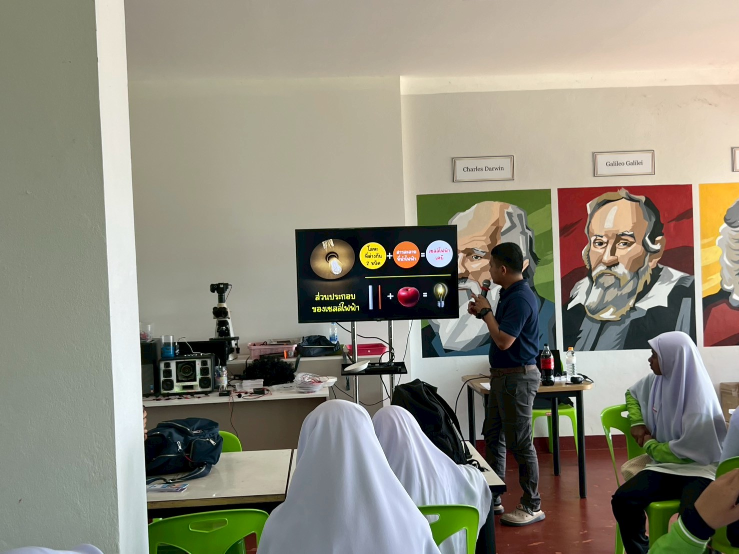 2. กิจกรรมเซลล์ไฟฟ้าเคมี ในกิจกรรมเซลล์ไฟฟ้าเคมี นักเรียนได้เรียนรู้หลักการทางวิทยาศาสตร์เกี่ยวกับปฏิกิริยาเคมีและการเปลี่ยนพลังงานเคมีให้เป็นพลังงานไฟฟ้า ผ่านการทดลองอย่างง่าย เช่น การต่อวงจรและการสังเกตการเกิดแรงดันไฟฟ้าจาก สารละลายและโลหะชนิดต่าง ๆ ช่วยให้เข้าใจแนวคิดเชิงนามธรรมด้วยประสบการณ์ตรง