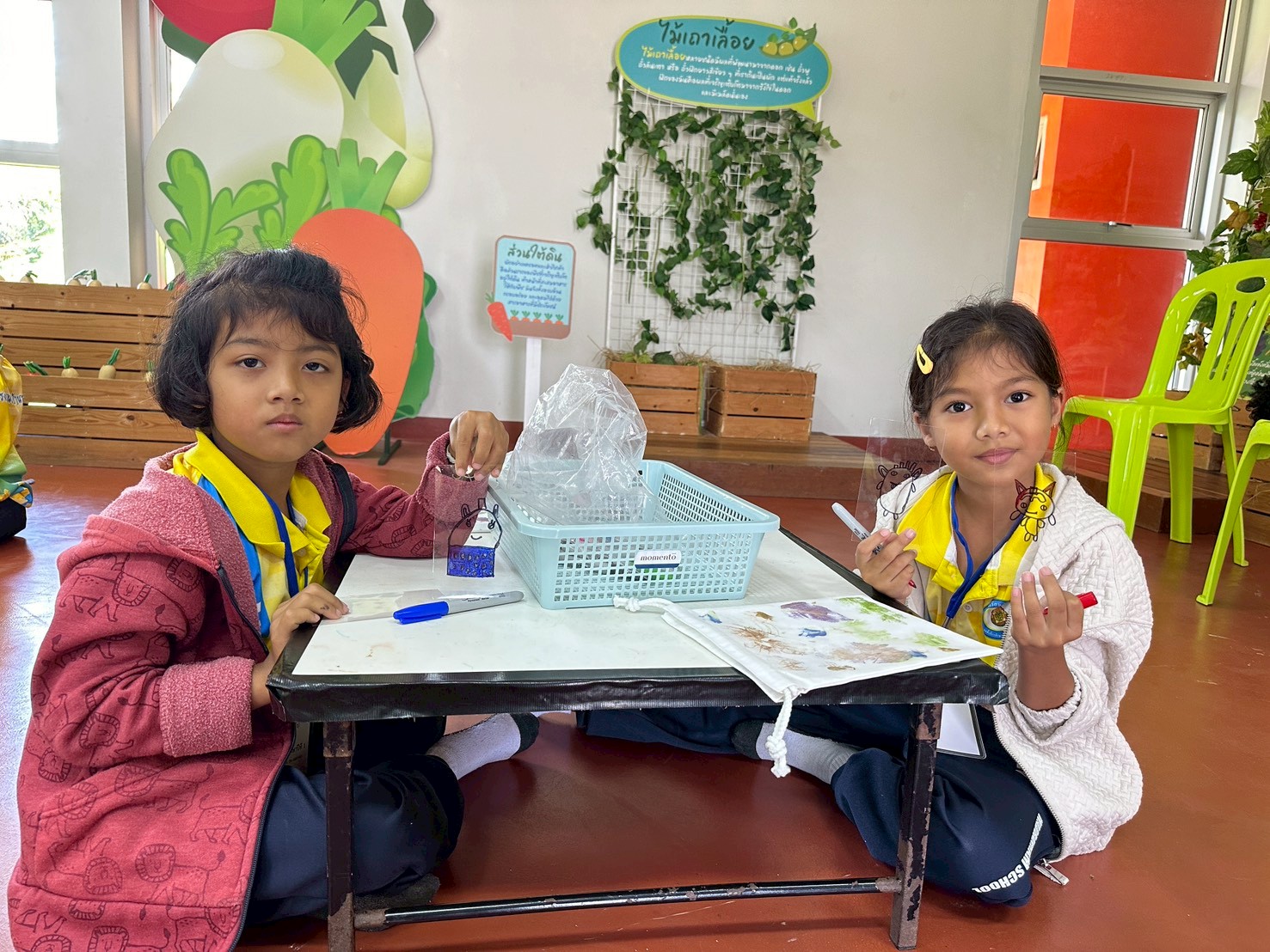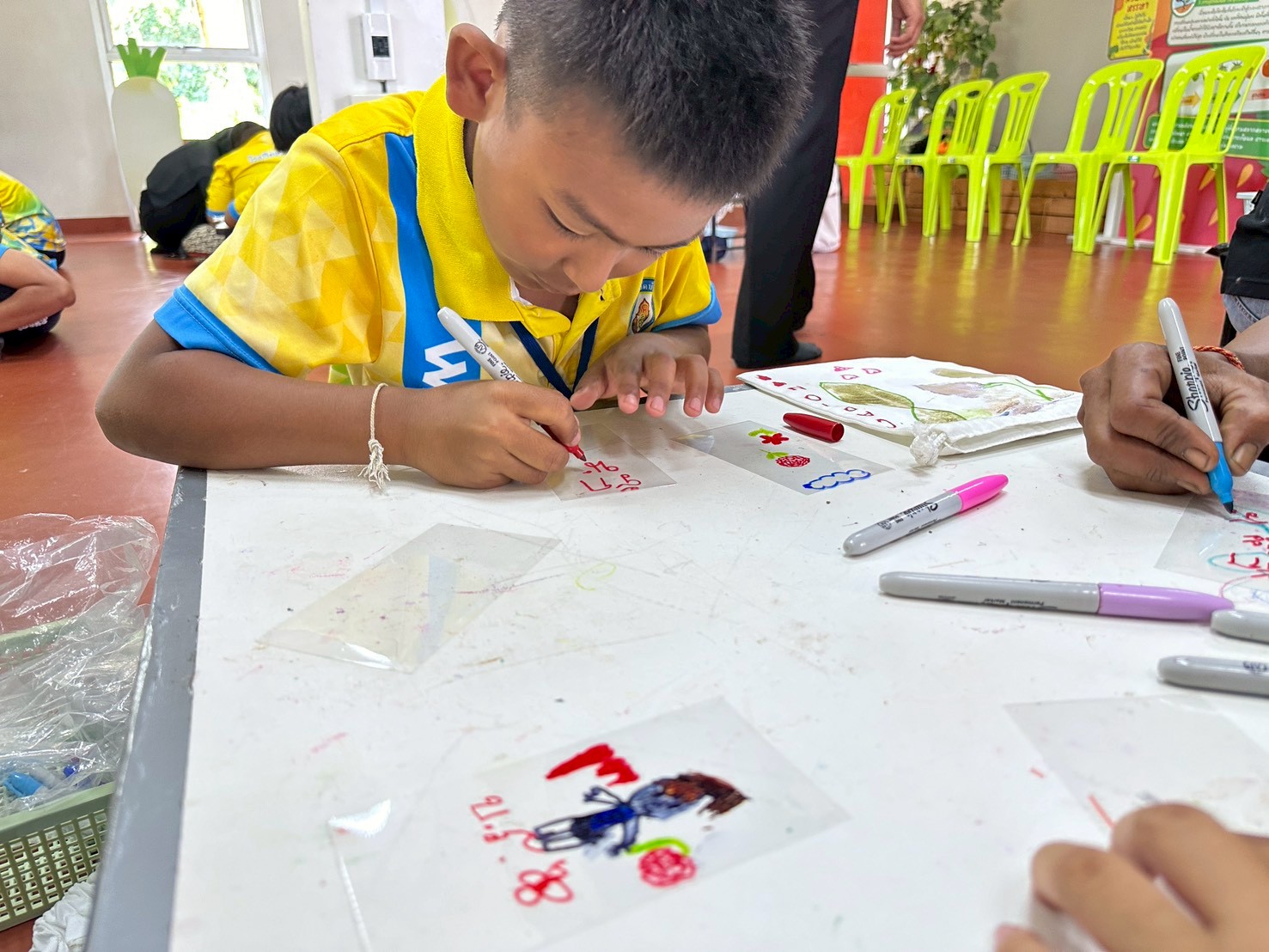 2. กิจกรรม Recycle ในกิจกรรมนี้ นักเรียนได้ฝึกออกแบบและประดิษฐ์พวงกุญแจจากวัสดุเหลือใช้ เช่น ฝาขวด เศษผ้า หรือวัสดุรีไซเคิลอื่น ๆ โดยวิทยากรได้ชี้ให้เห็นถึงความสำคัญของการใช้ทรัพยากรอย่างคุ้มค่า การลดขยะ และการนำวัสดุเหลือใช้กลับมาสร้างคุณค่าใหม่ ช่วยส่งเสริมความคิดสร้างสรรค์และความตระหนักด้านสิ่งแวดล้อมไปพร้อมกัน