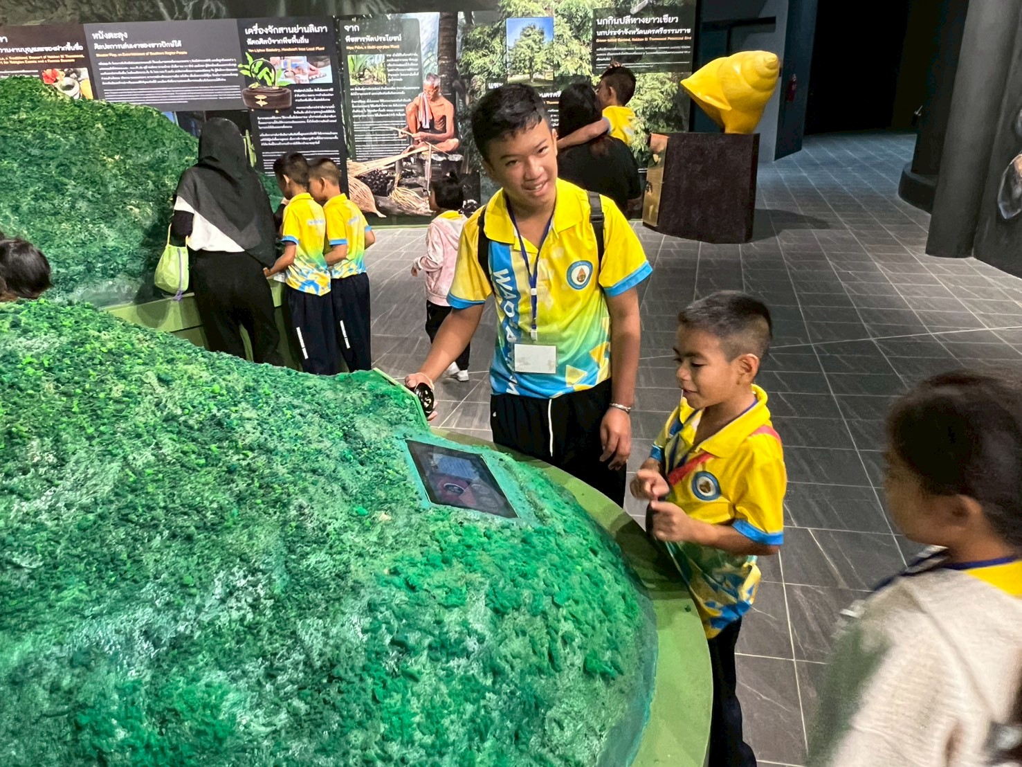 3. กิจกรรมเยี่ยมชมพิพิธภัณฑ์ธรรมชาติวิทยาเทพรัตนราชสุดาฯ ช่วงสุดท้ายของการเรียนรู้ นักเรียนได้เข้าเยี่ยมชมห้องจัดแสดงภายในพิพิธภัณฑ์ธรรมชาติวิทยาเทพรัตนราชสุดาฯ ทำความรู้จักความหลากหลายทางชีวภาพ ระบบนิเวศ และเรื่องราวทางธรรมชาติวิทยา ผ่านนิทรรศการและสื่อการเรียนรู้หลากหลายรูปแบบ ซึ่งช่วยเปิดมุมมองใหม่ด้านธรรมชาติวิทยาและการอนุรักษ์ทรัพยากรในท้องถิ่น