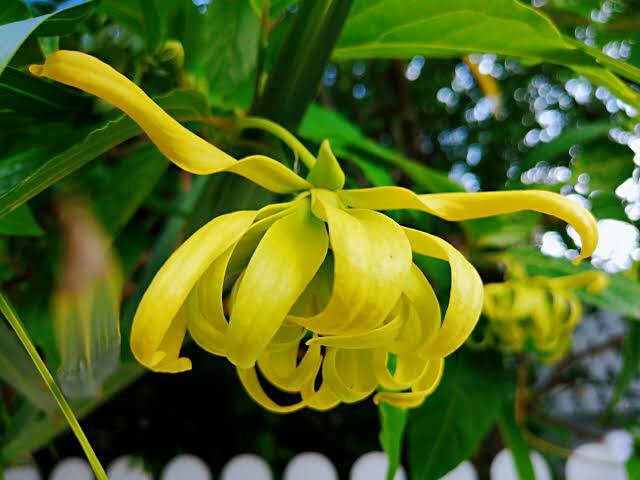 ดอกเดี่ยว ออกที่ซอกใบด้านล่าง ตรงข้ามกับใบ เริ่มออกสีเขียวและต่อมาเปลี่ยนเป็นสีเหลือง ก้านดอกยาว 2-8 เซนติเมตร มีขนกระจายทั่วไป กลีบดอก 6 กลีบ แบ่งเป็น 2 วง วงละ 3 กลีบ กลีบชั้นในเล็กกว่าชั้นนอก กลีบชั้นนอกแยกกัน รูปขอบขนานหรือรูปขอบขนานแกมรูปรี แต่ละกลีบมีลักษณะบิดงอ โคนกลีบดอกมีรอยคอดใกล้ฐานดอก โคนตัด ปลายแหลม ขอบเรียบหรือเป็นคลื่น มีขนนุ่มกระจายทั้งสองด้าน ส่วนกลีบชั้นในเรียงจรดและแยกกัน รูปขอบขนาน หรือรูปหอก เกสรเพศผู้ 150-240 อัน รูปคล้ายทรงกระบอก